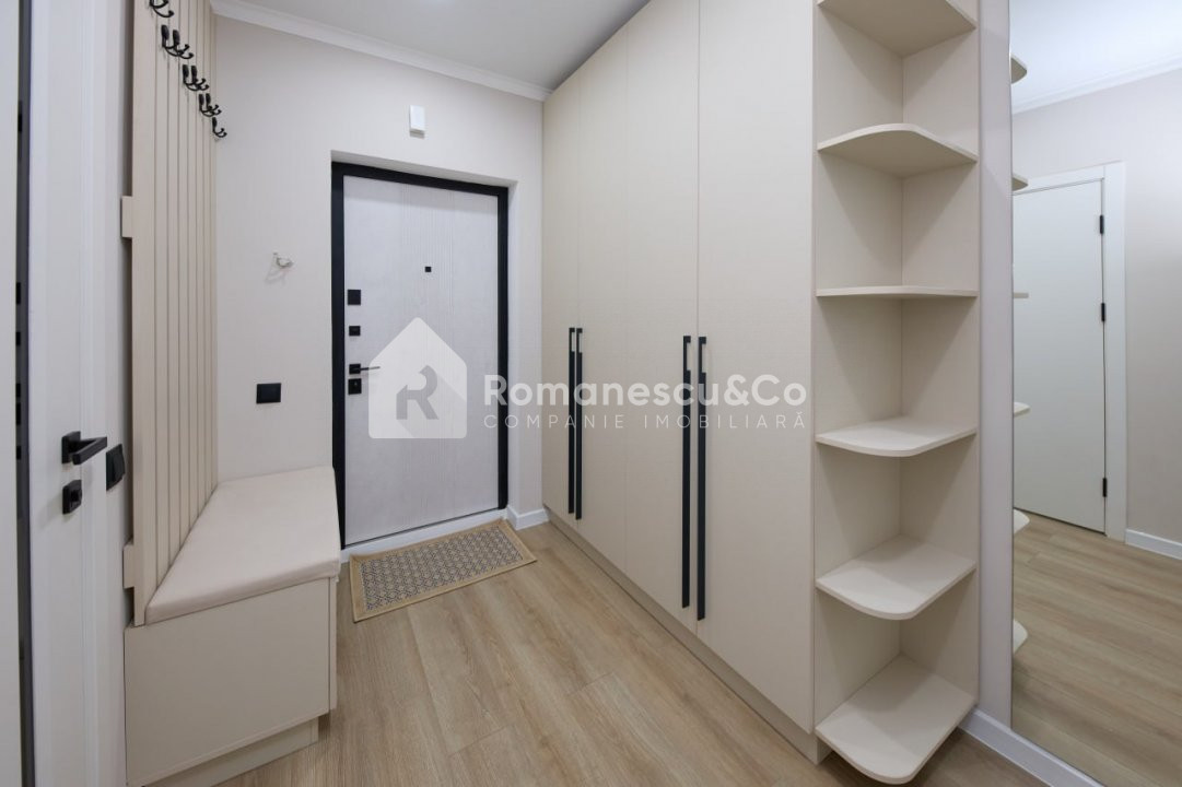 Apartamentul are o suprafață totală de 43 mp, este amplasat la etajul 4 din 9 și dispune de: