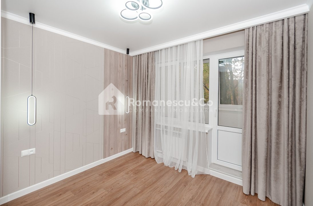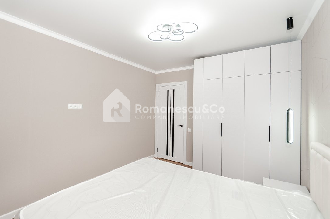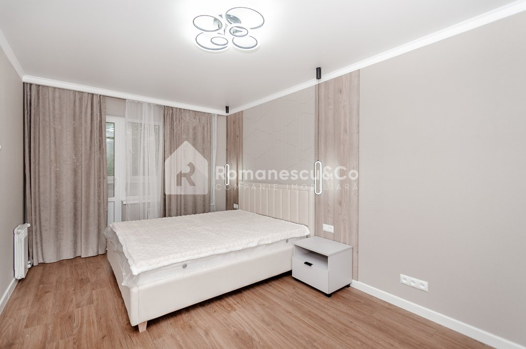 Apartamentl se extinde pe o suprafață de 75 mp și este compartimentat în 3 dormitoare separate, bucătărie, antreu, 2 blocuri sanitare, 3 balcoane.