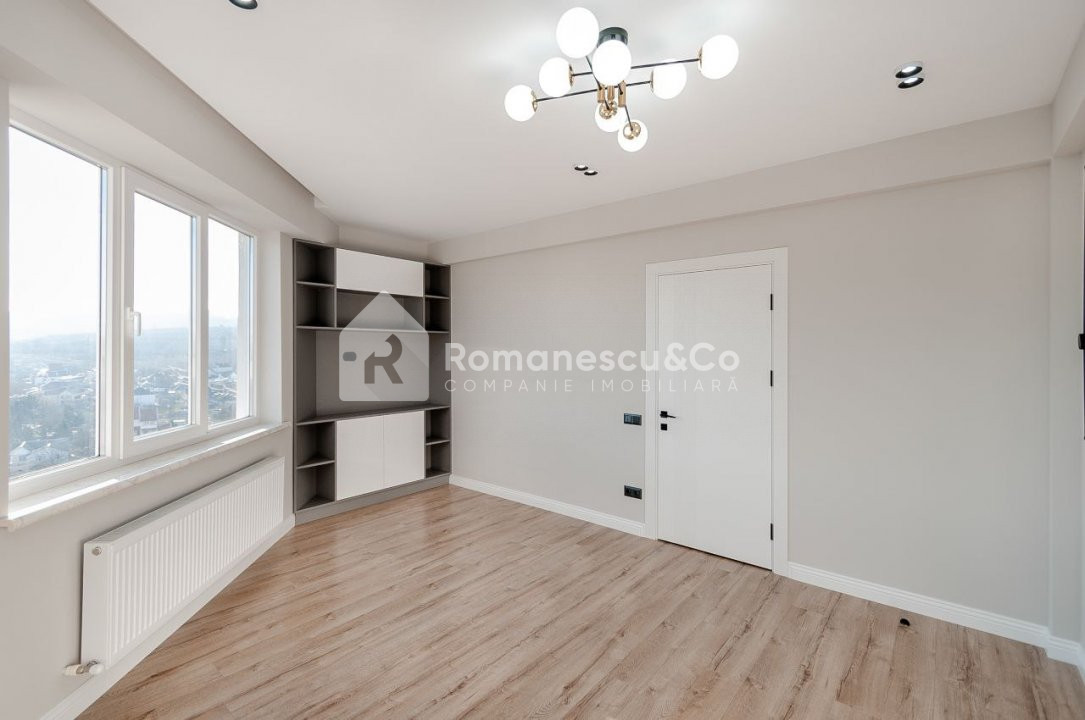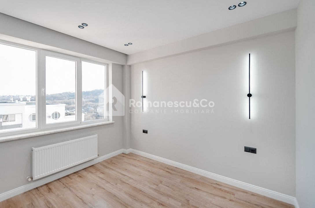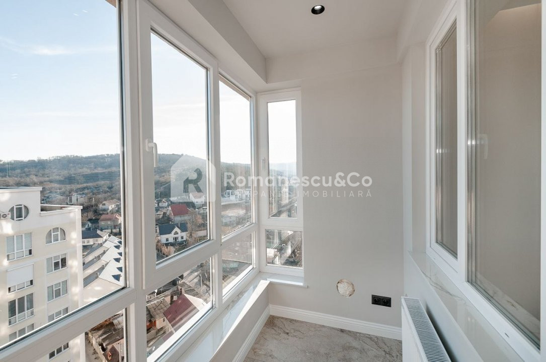 Situat la etajul 10 din 14, apartamentul beneficiază de priveliști frumoase și lumină naturală din plin.