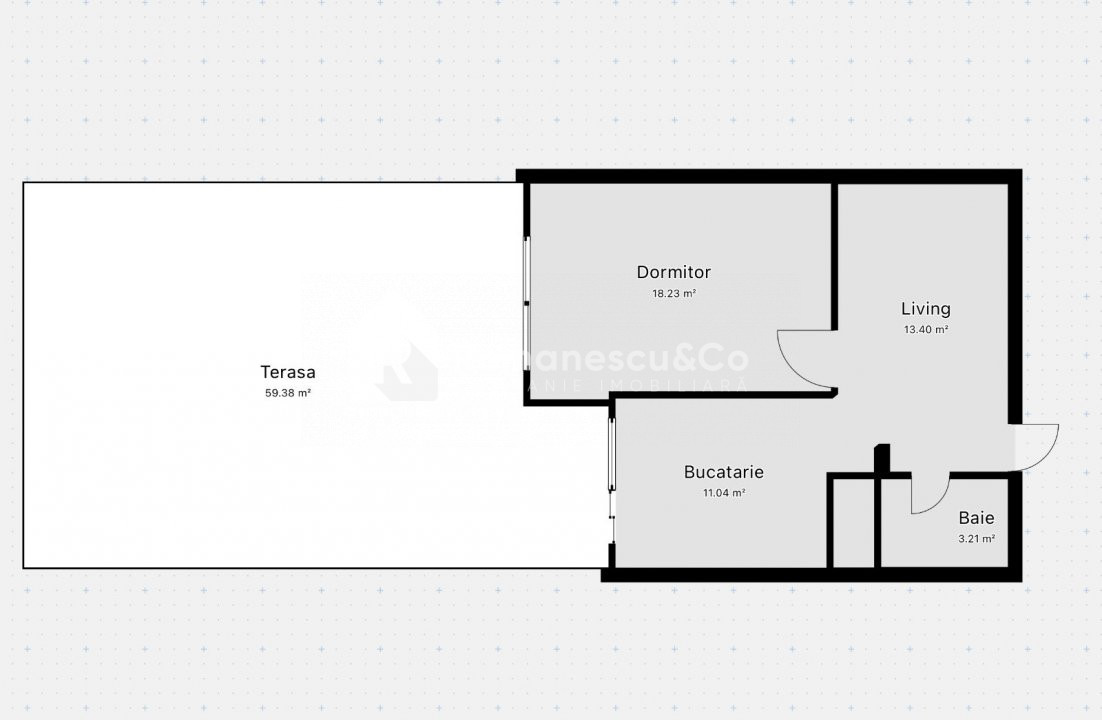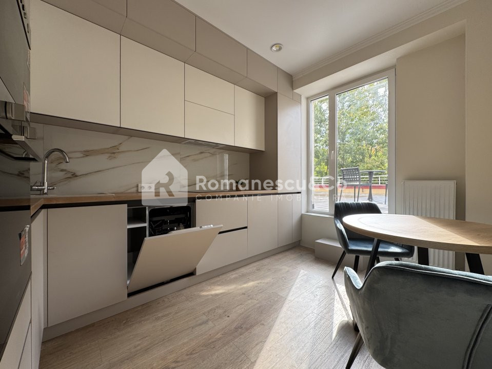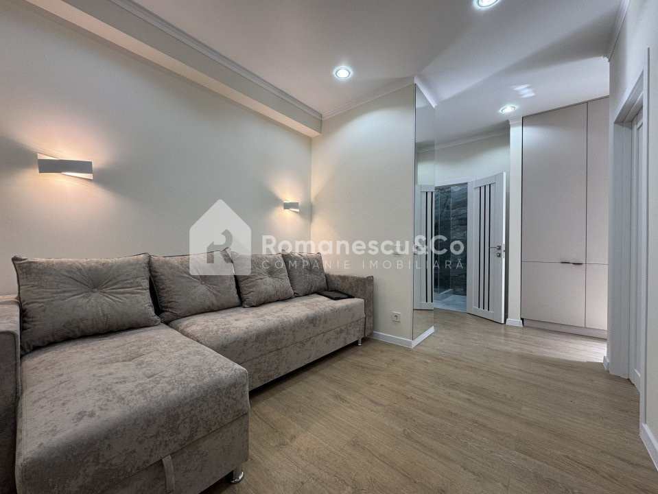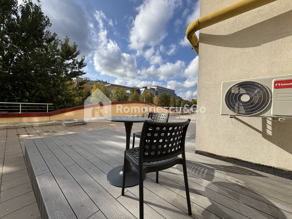 Apartamentul dispune de o terasa generoasă de 60 mp, un dormitor, living, bucătărie, antreu, bloc sanitar.