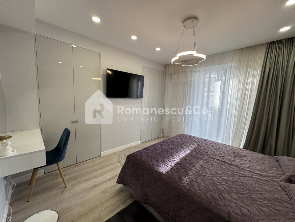 Apartament nou, 73 mp. Suflet și rafinament – 2 camere + living, 2 băi, garderobă, zonă de birou. Descriere: Un apartament care impresionează prin design, spațiu, lumină și confort. Finisaje premium, 2 băi complet echipate, dressing spațios și bucătărie modernă cu electrocasnice Samsung. Bloc..