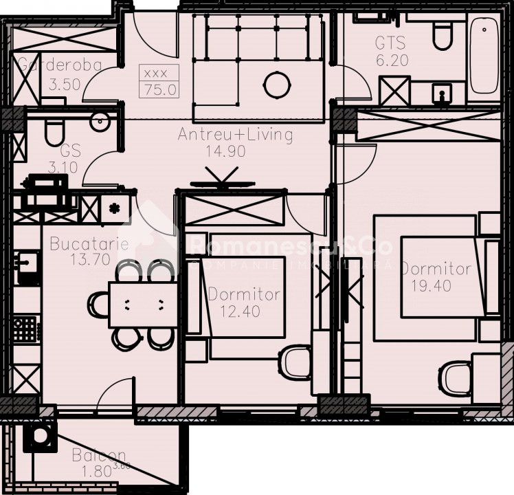 Bosco Residenza! partament cu 2 camere+living, 75 mp, bl. 3.