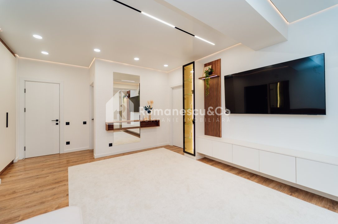 Великолепный, свежий евроремонт — всё сделано на высоком уровне: натяжные потолки, светодиодная подсветка, трек-системы освещения.